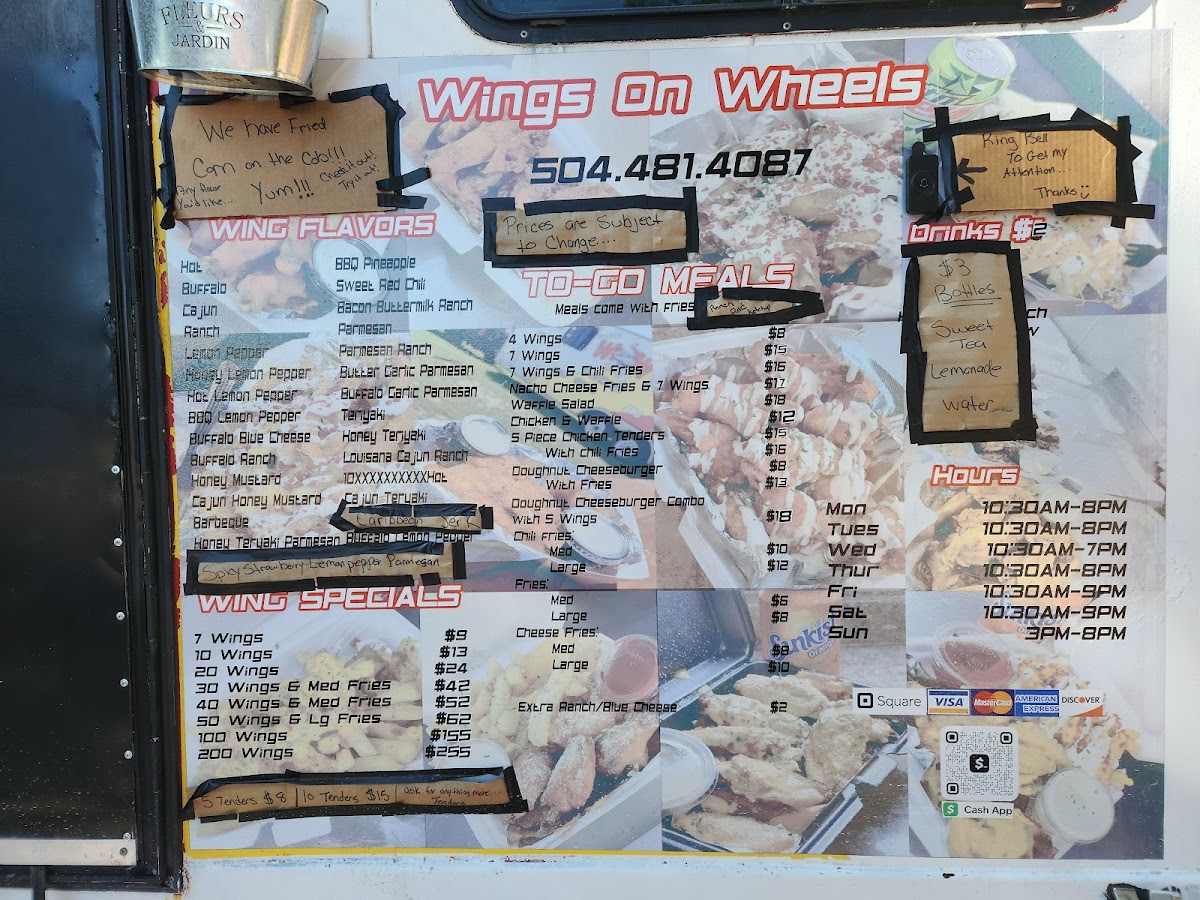 The menu at Wings On Wheels offers a satisfying mix of indulgent comfort foods and classic wing options that cater to both casual diners and serious wing enthusiasts. Their Wing Specials, including Wings & Medium Fries, Wings, and 50 Wings & Large Fries, provide flexible portions for solo cravings or group feasts. For those who love loaded sides, the selection of Fries-Chili Fries, Cheese Fries, and classic Fries-adds a hearty complement to the main dishes. The To-Go Meals highlight creative twists like the Doughnut Cheeseburger and the Doughnut Cheeseburger Combo With 5 Wings, alongside fan-favorites such as 5 Pieces Chicken TendersWings and the sweet-savory Chicken & Waffle. Overall, the menu balances generous portions with playful flavor combinations, making each visit a flavorful, satisfying experience without overwhelming the diner.